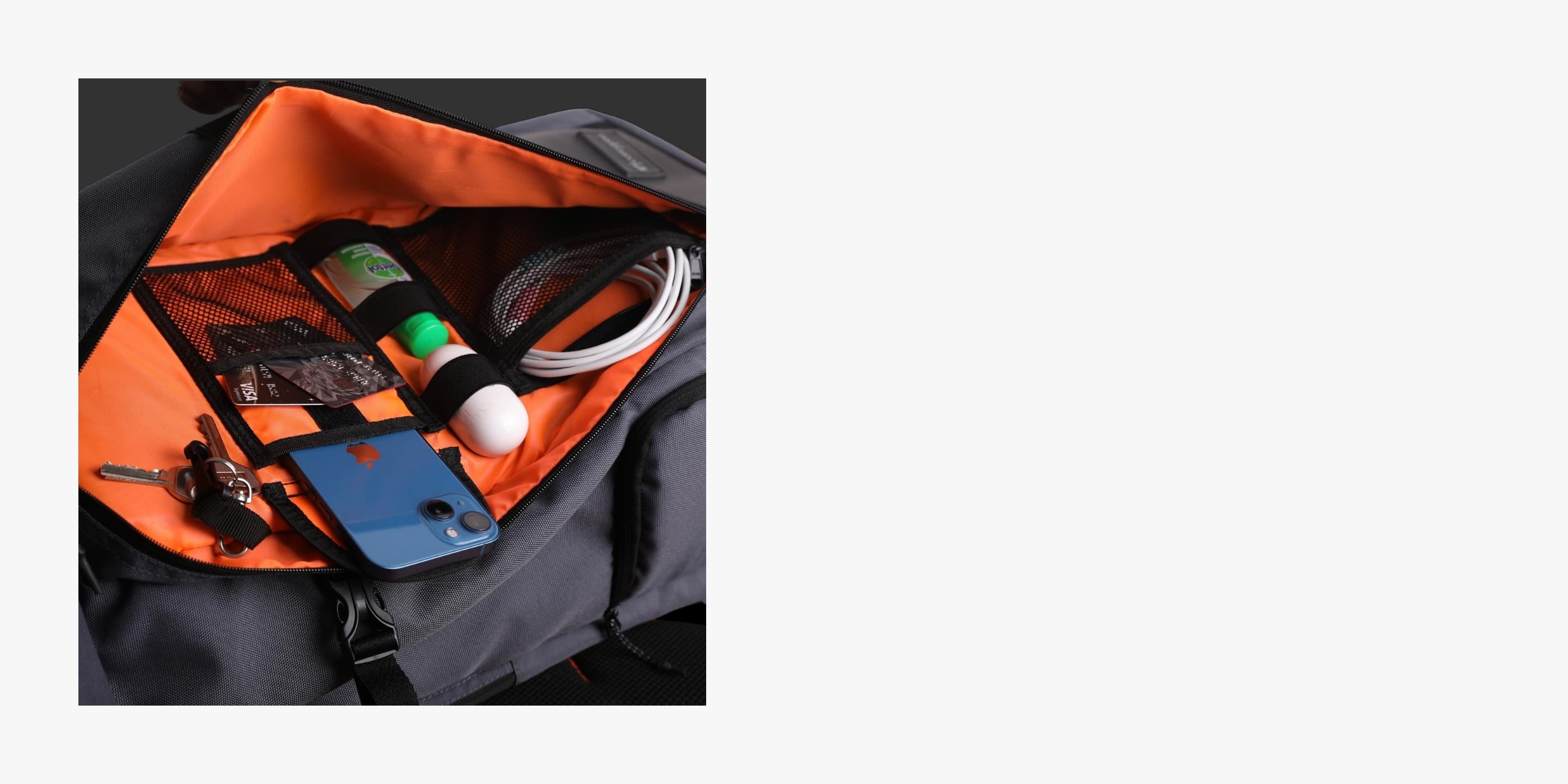 Front organizer compartment to keep cables, medicines, books, and much more. With a dedicated key hook to give personal space to your keys.