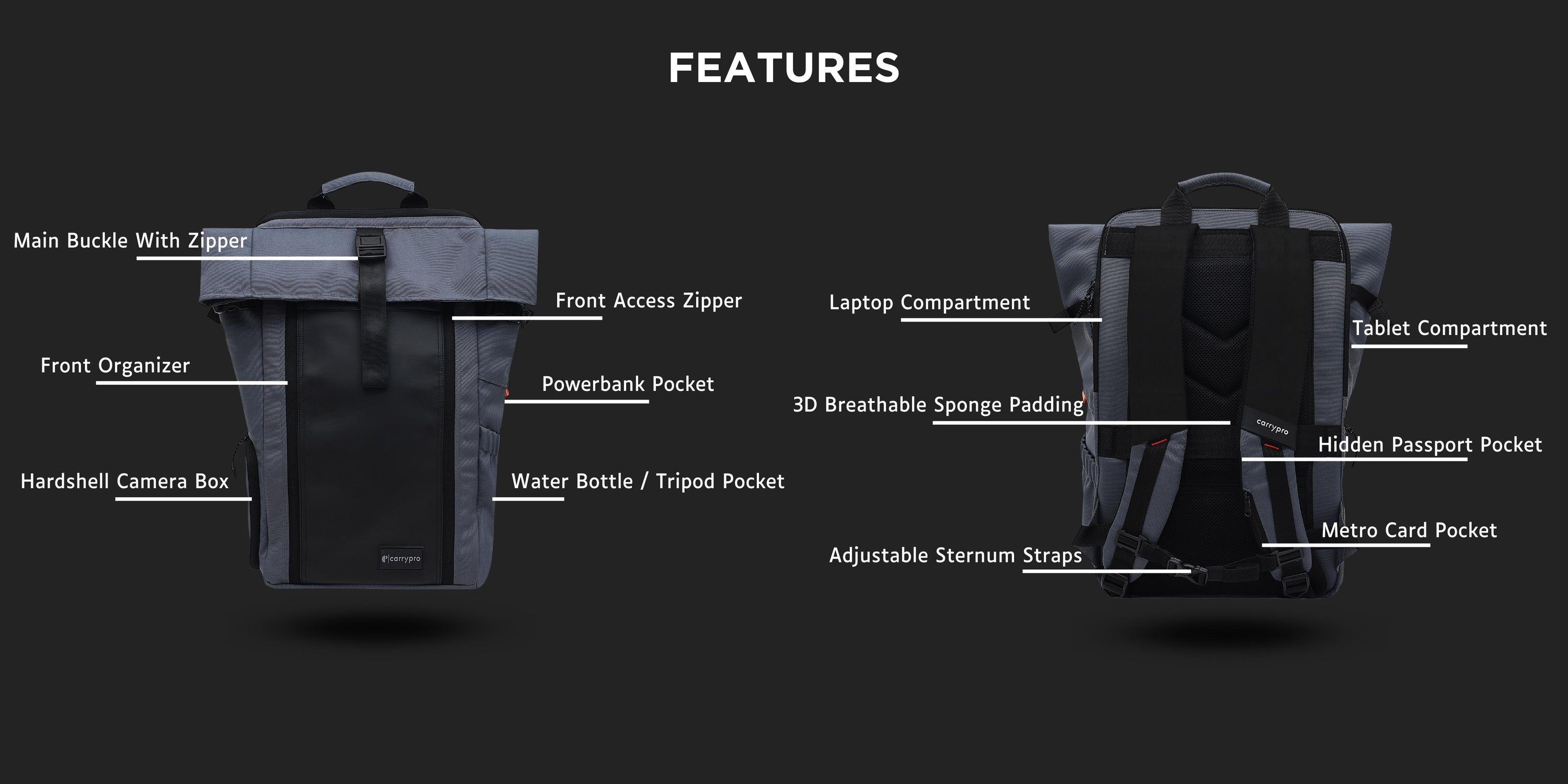 - With a removable hardshell CAMERA BOX, you will not miss capturing the beautiful scenery while on the go. You can remove this box and make it a SHOE COMPARTMENT to access from the side. Isn’t it great?