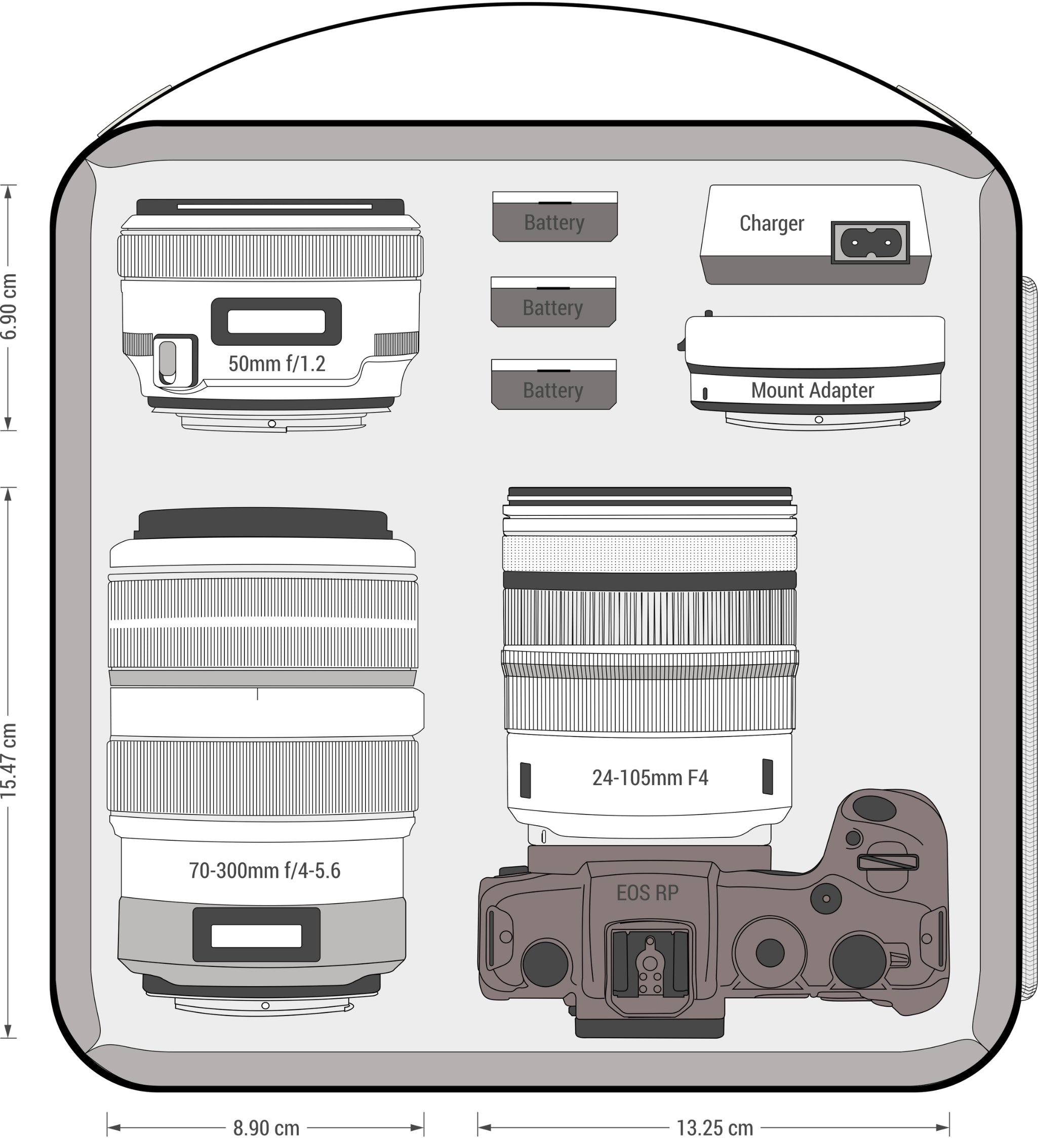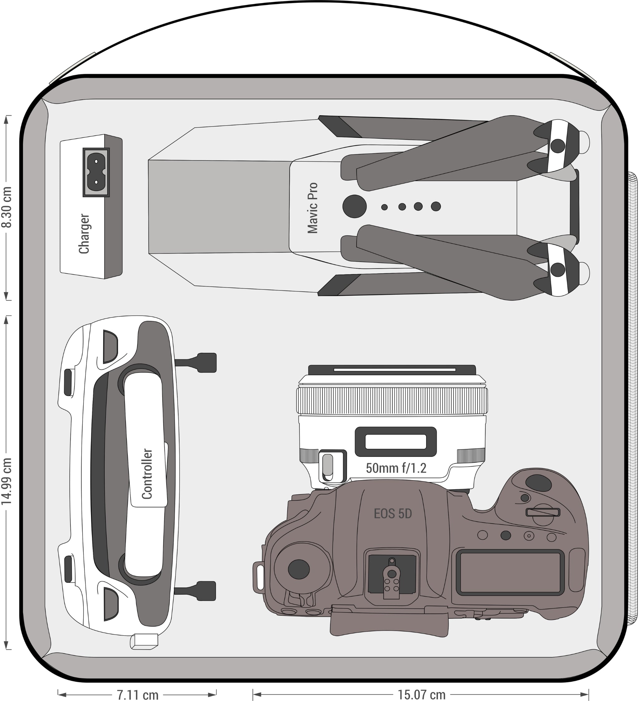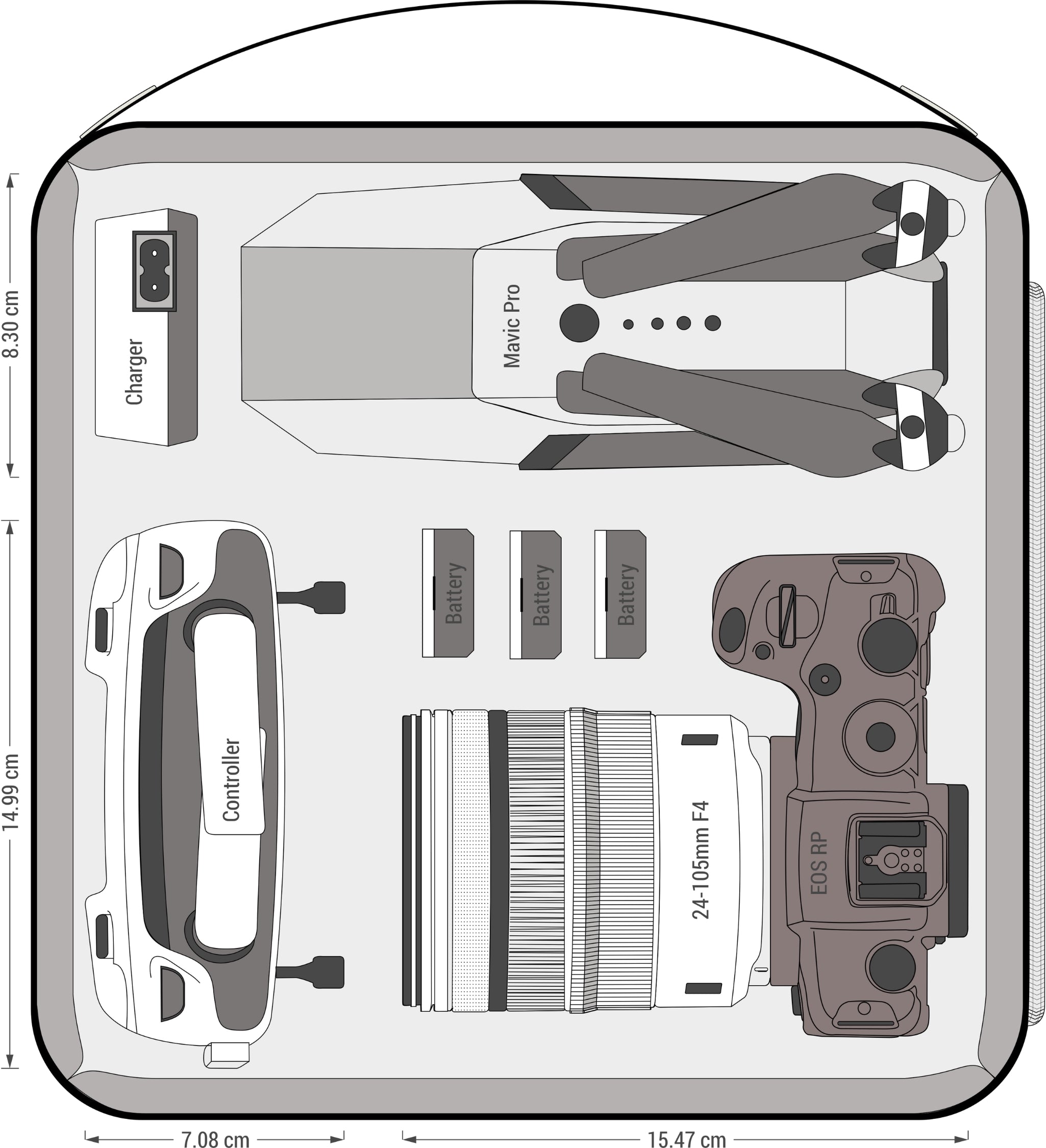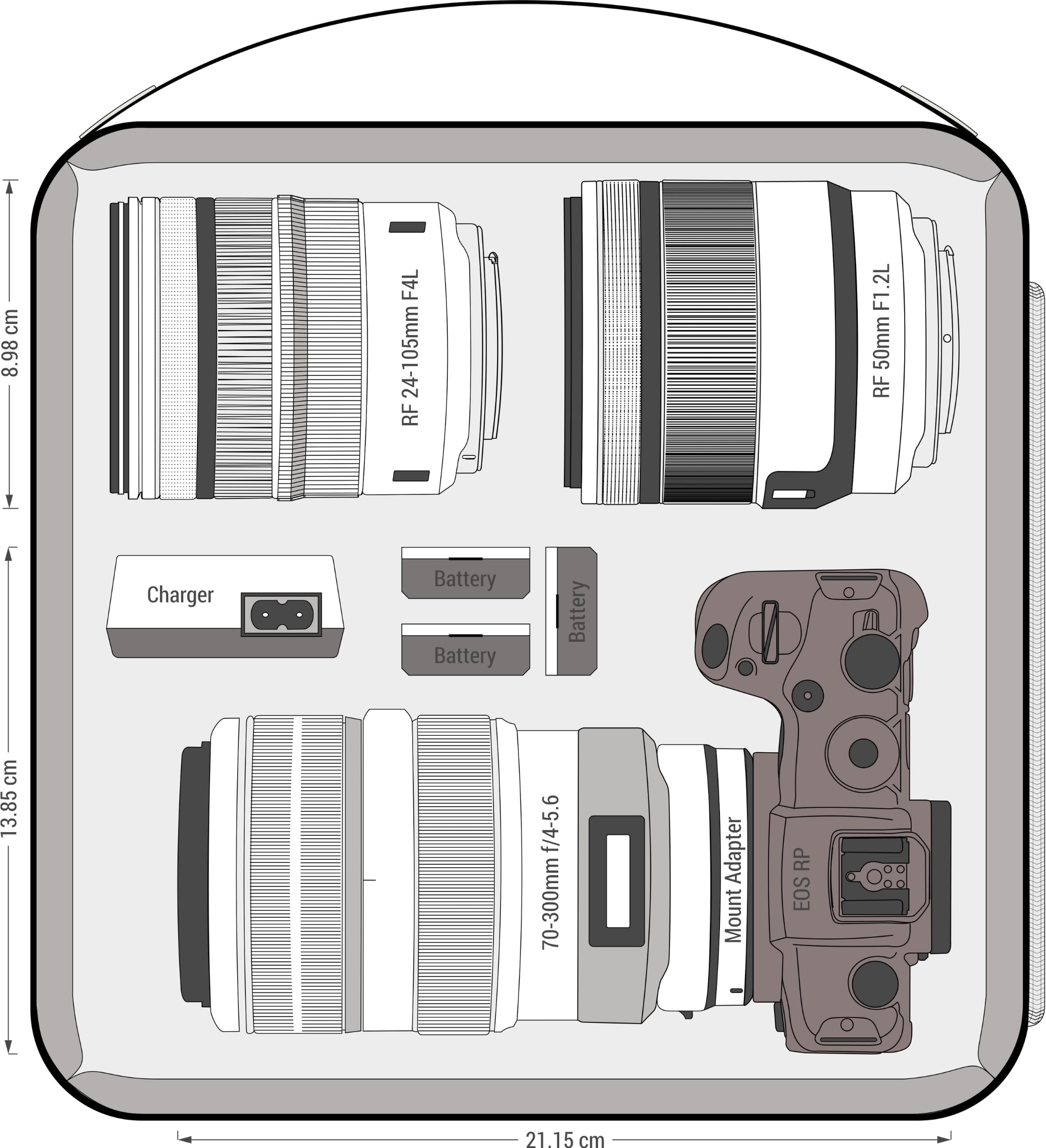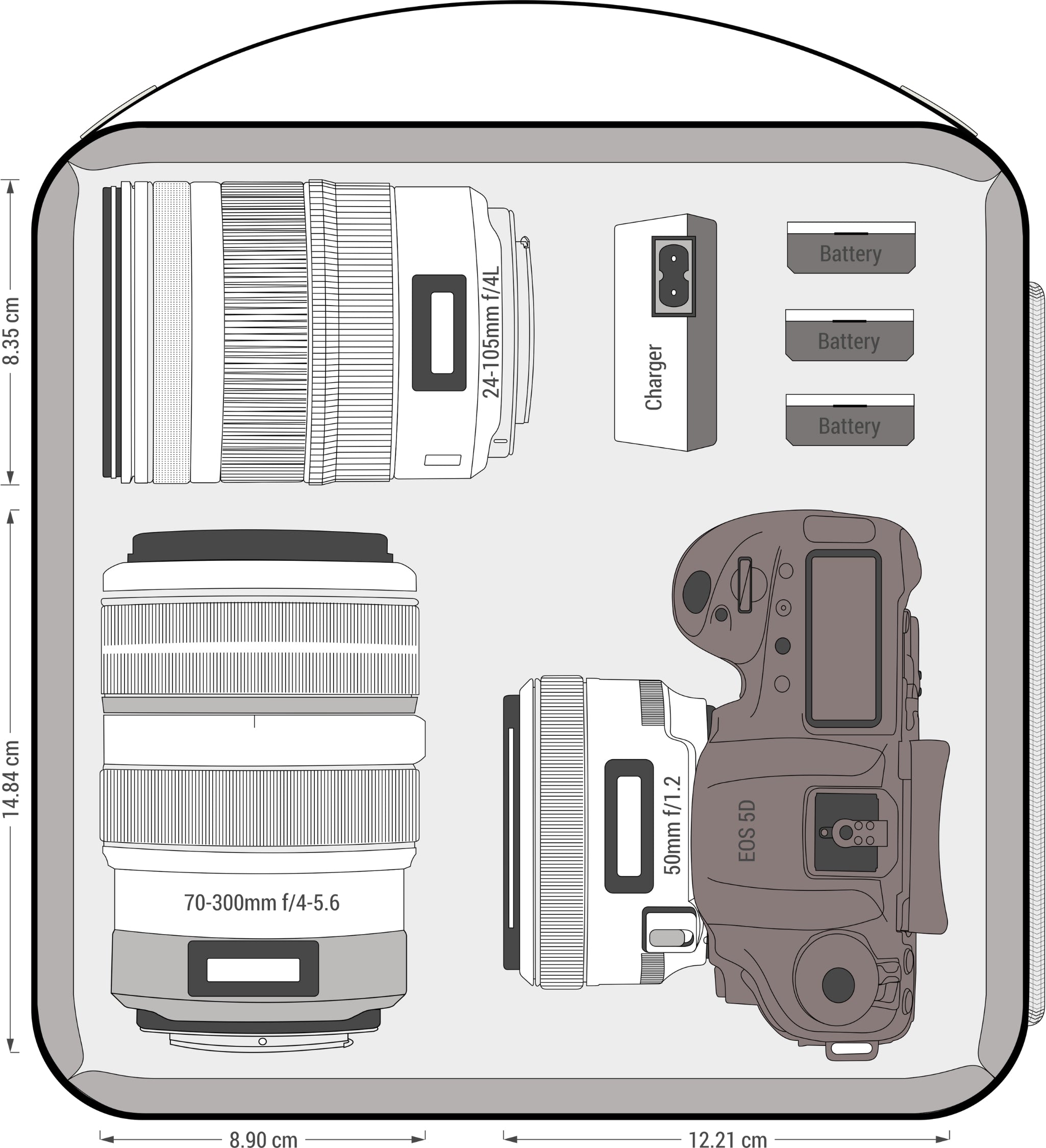 - Detachable Camera Cube with removable sling belt and 5 padded dividers.
