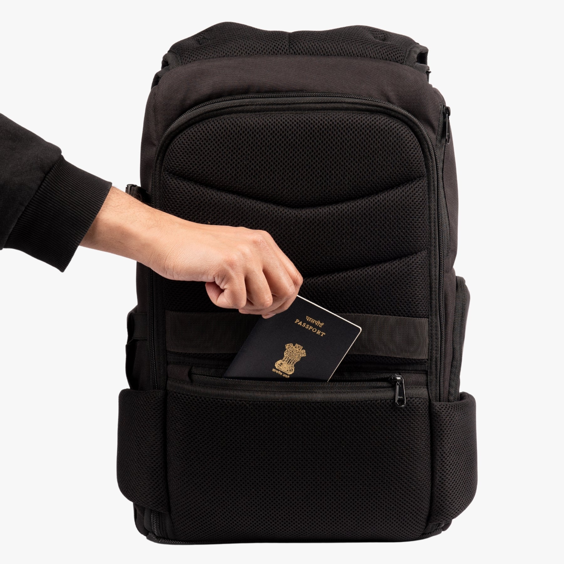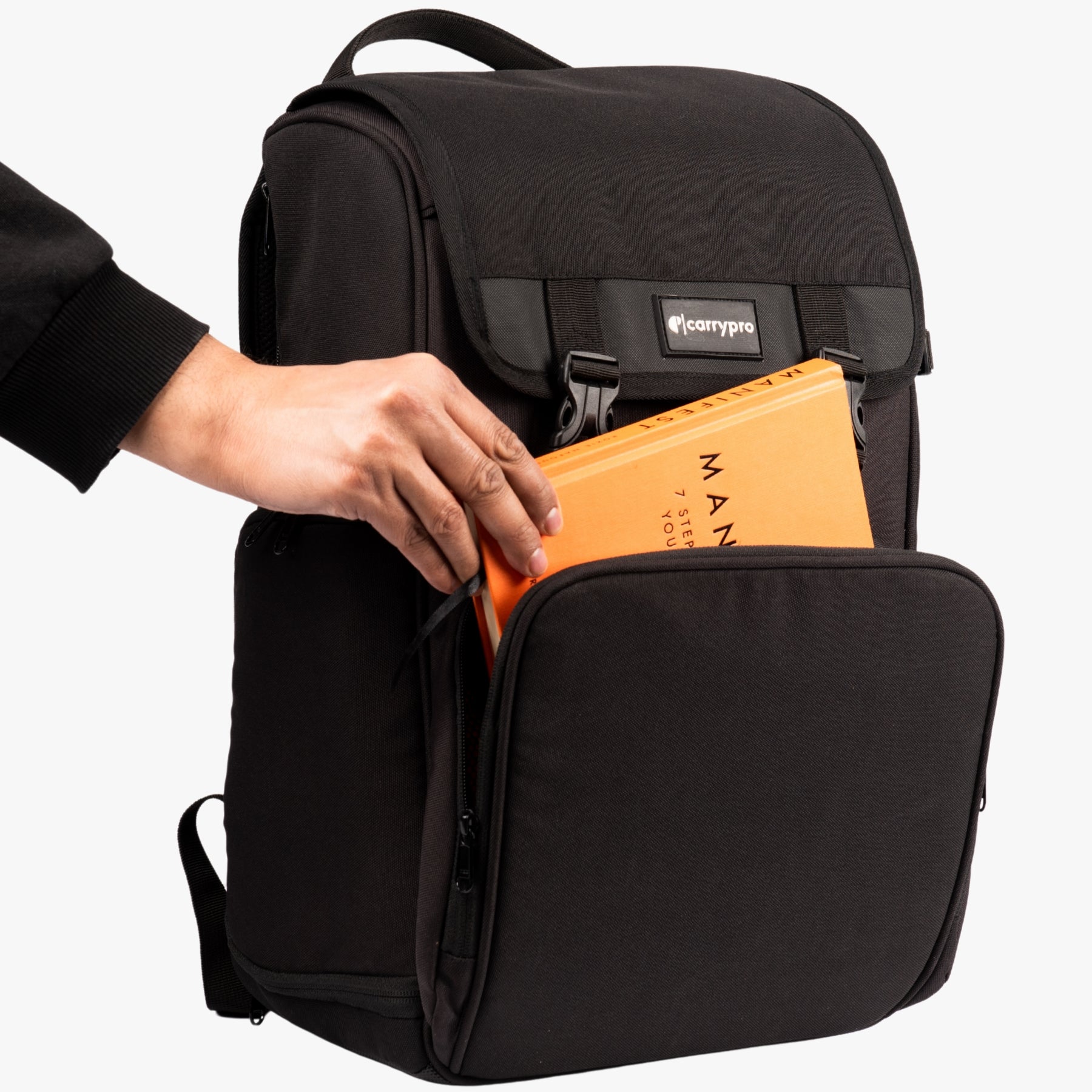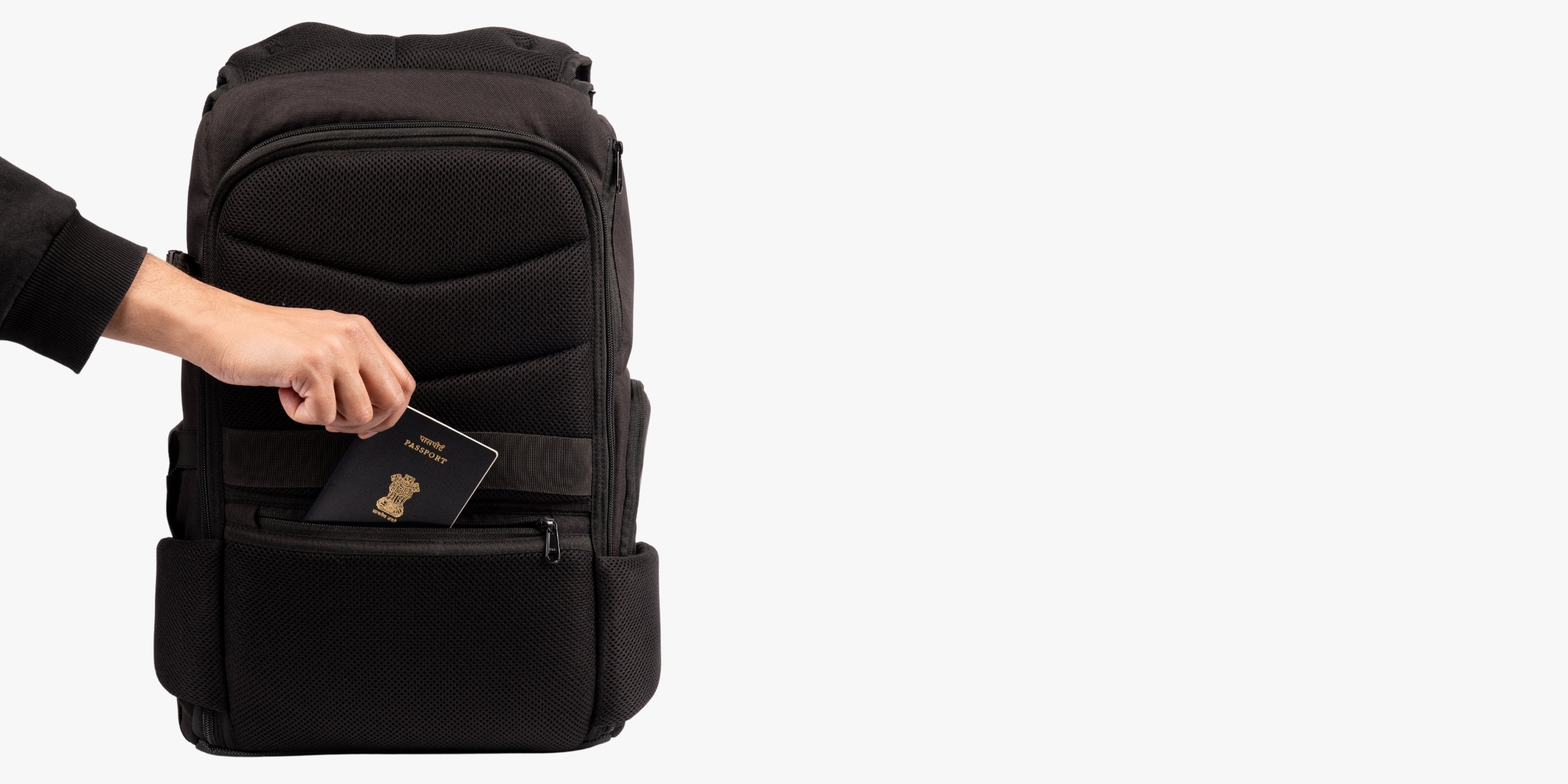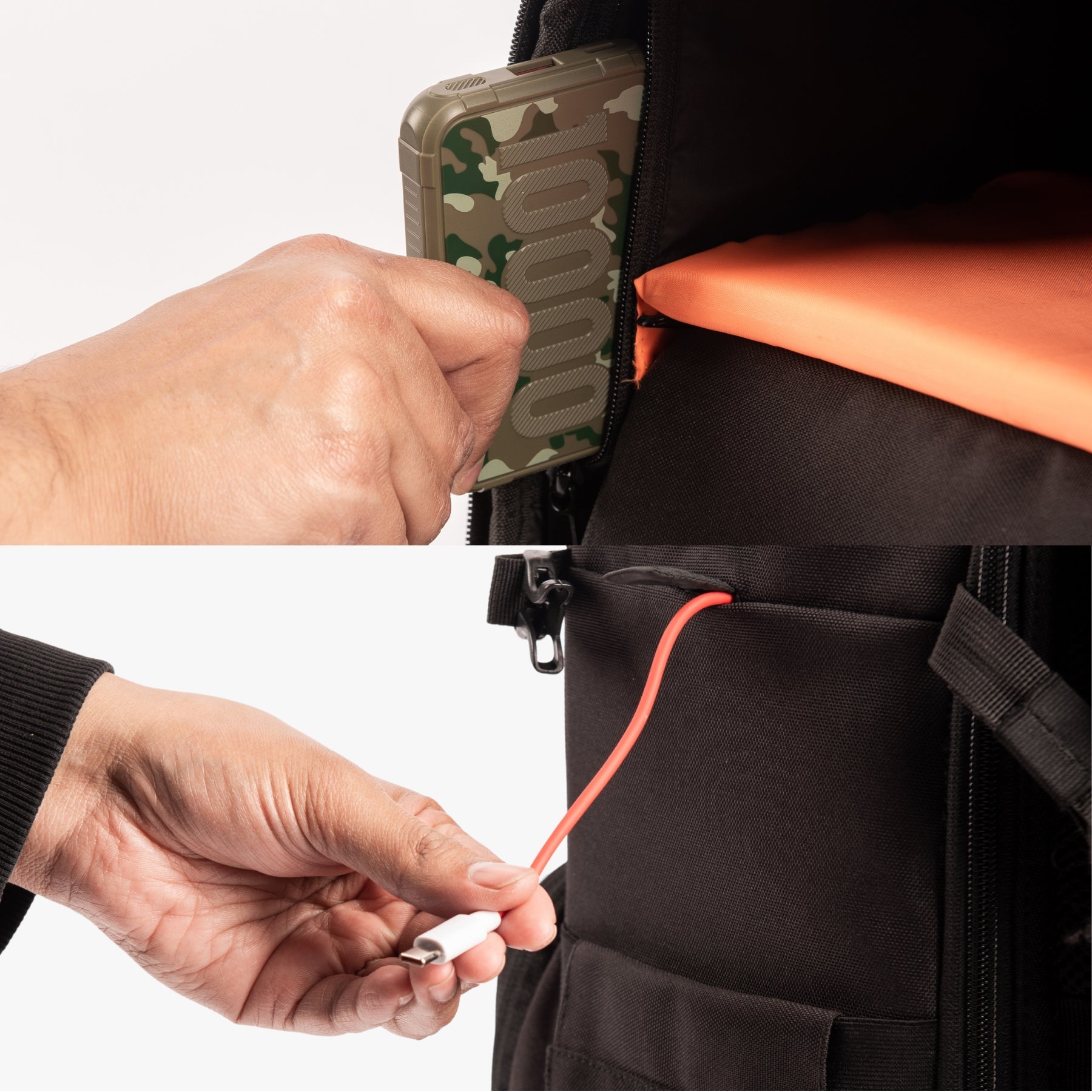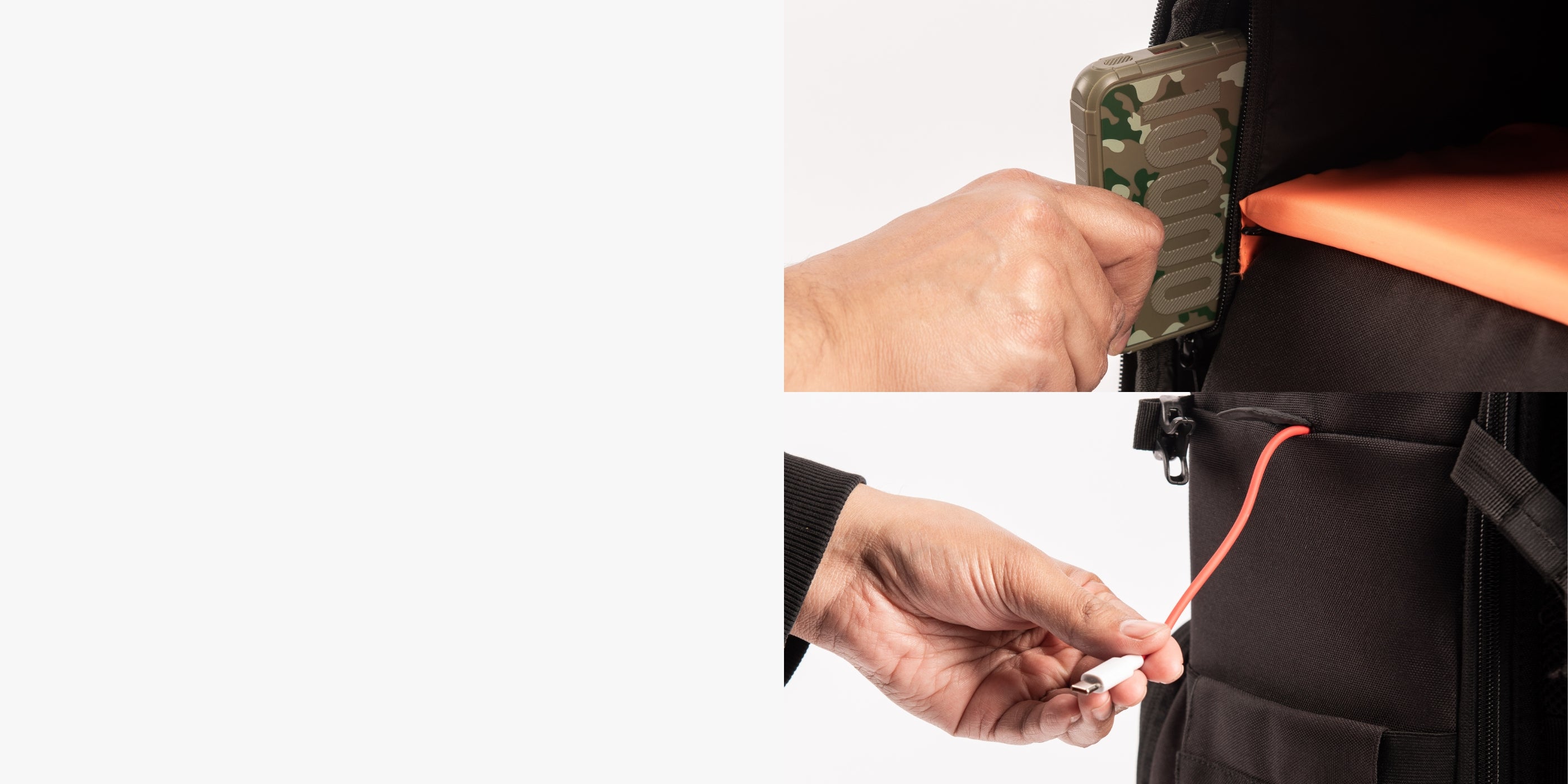 Power bank pocket which lets the cable pass through the bag for quick usage without having to open the entire bag.